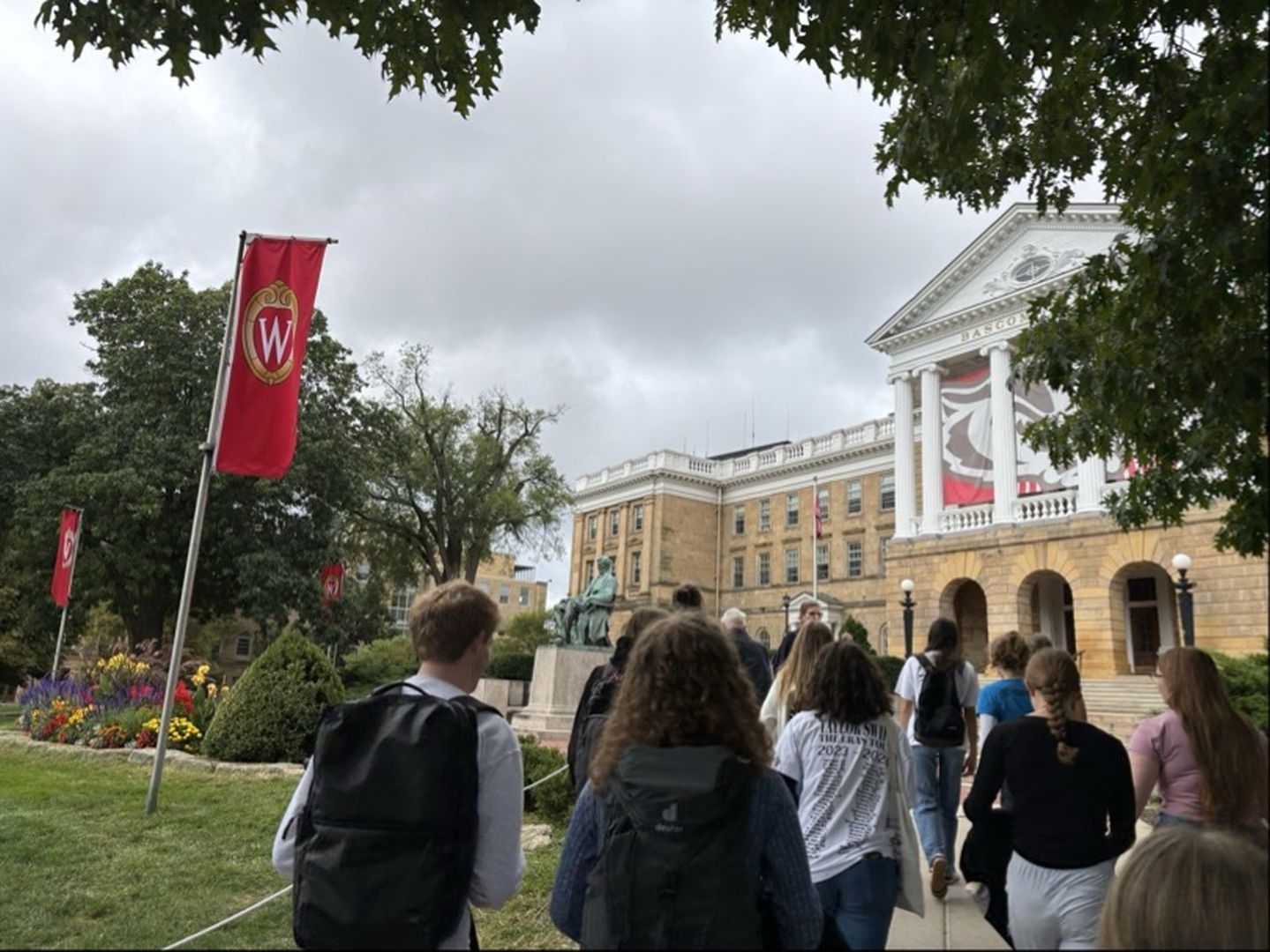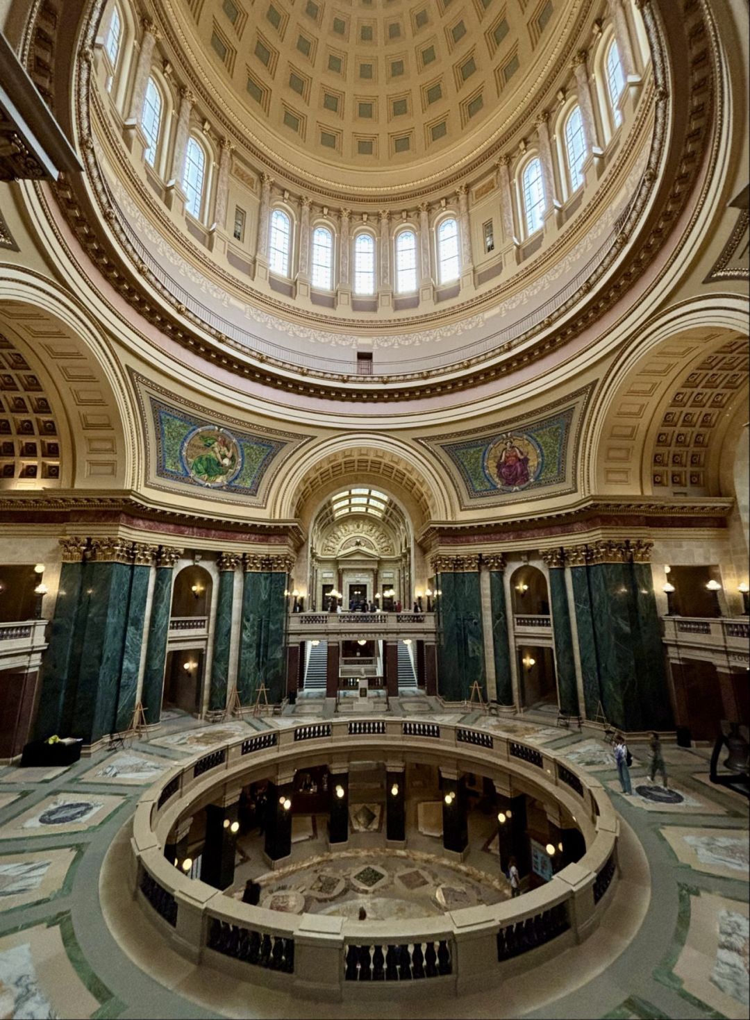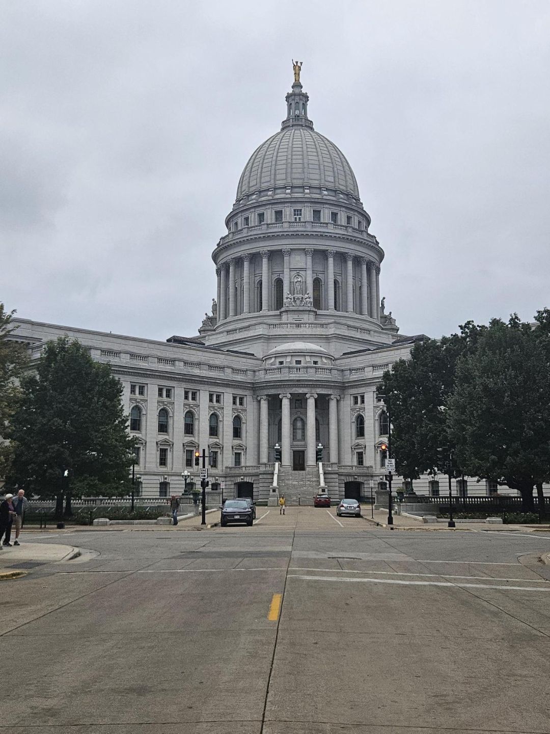Den heutigen Tag haben wir in der Hauptstadt von Wisconsin, Madison, verbracht. Als erstes sahen wir uns den Campus der University of Wisconsin an und haben eine Führung durch das Gebäude bekommen. Aufgrund der Höhe des Gebäudes hatte man einen unglaublichen Ausblick über die Stadt, die angrenzenden Seen und besonders das Capitol, welches wir uns später noch aus der Nähe ansahen. Nach der Führung hielten wir uns noch ein wenig auf dem schönen Campus am Ufer auf, bevor wir selbständig durch die Stadt und die State Street liefen und bei einem der vielen Restaurants oder Food Trucks zu Mittag aßen. Anschließend traf sich die ganze Gruppe vor dem Capitol von Madison wieder, wo wir ein paar chaotische Sprungbilder machten. Danach haben wir uns das Capitol auch von innen angeschaut und sind auf die Außenterasse gegangen, von wo aus man wieder einen tollen Blick über die Stadt hatte. Der Abschluss unseres Madisons Ausflugs war eine Führung durch das Capitol.