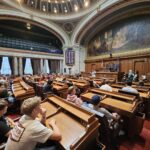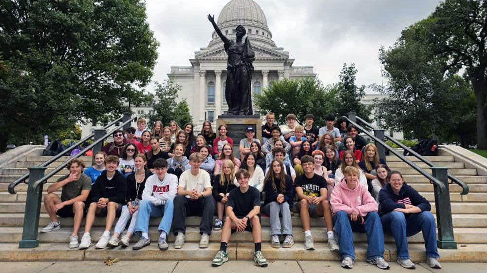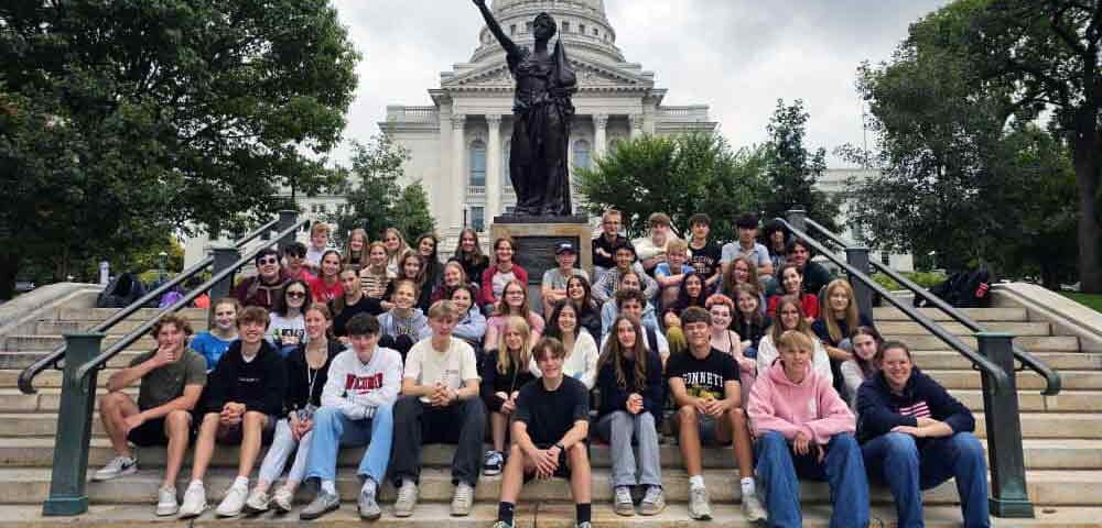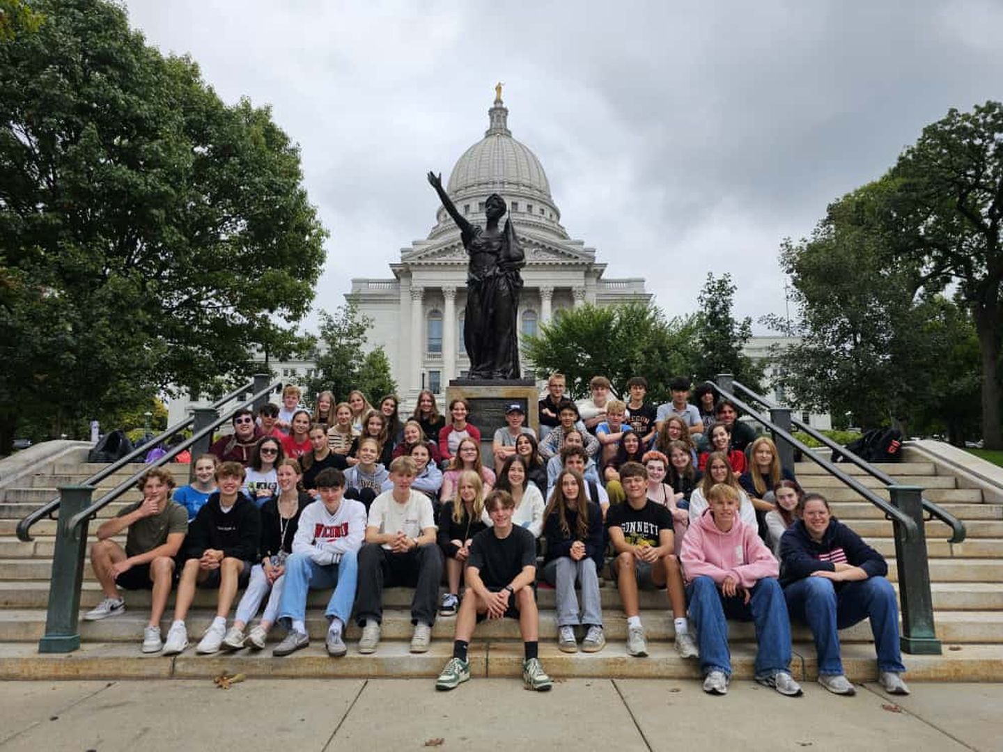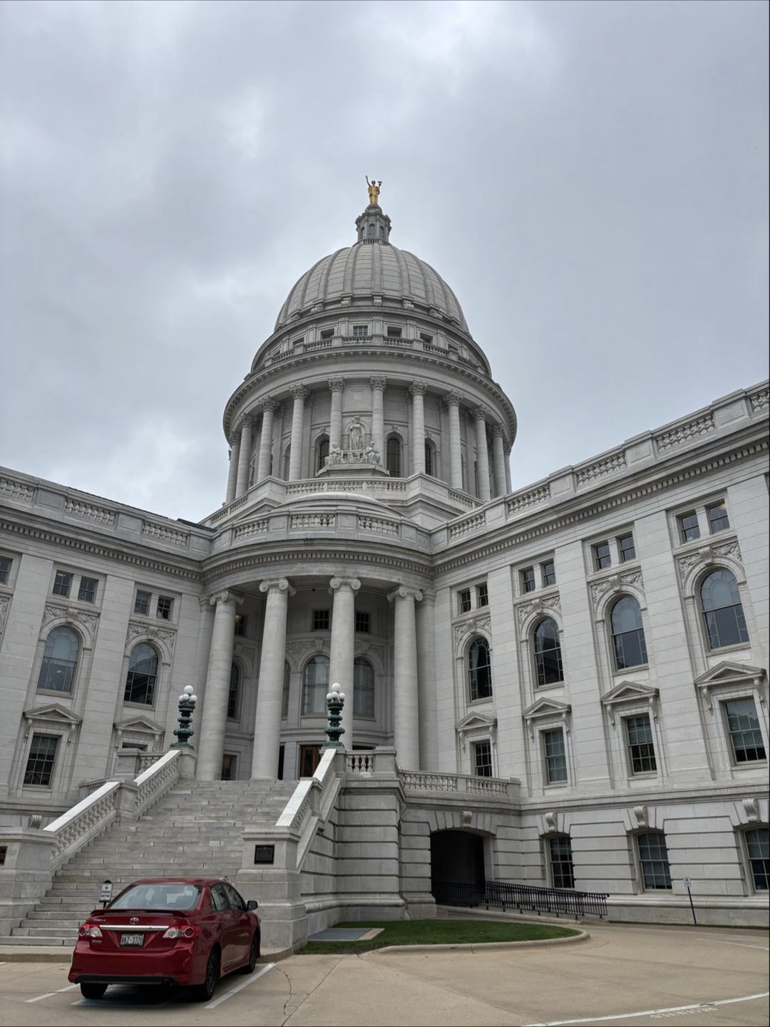 Den heutigen Tag haben wir in der Hauptstadt von Wisconsin, Madison, verbracht. Als erstes sahen wir uns den Campus der University of Wisconsin an und haben eine Führung durch das Gebäude bekommen. Aufgrund der Höhe des Gebäudes hatte man einen unglaublichen Ausblick über die Stadt, die angrenzenden Seen und besonders das Capitol, welches wir uns später noch aus der Nähe ansahen. Nach der Führung hielten wir uns noch ein wenig auf dem schönen Campus am Ufer auf, bevor wir selbständig durch die Stadt und die State Street liefen und bei einem der vielen Restaurants oder Food Trucks zu Mittag aßen. Anschließend traf sich die ganze Gruppe vor dem Capitol von Madison wieder, wo wir ein paar chaotische Sprungbilder machten. Danach haben wir uns das Capitol auch von innen angeschaut und sind auf die Außenterasse gegangen, von wo aus man wieder einen tollen Blick über die Stadt hatte. Der Abschluss unseres Madisons Ausflugs war eine Führung durch das Capitol.