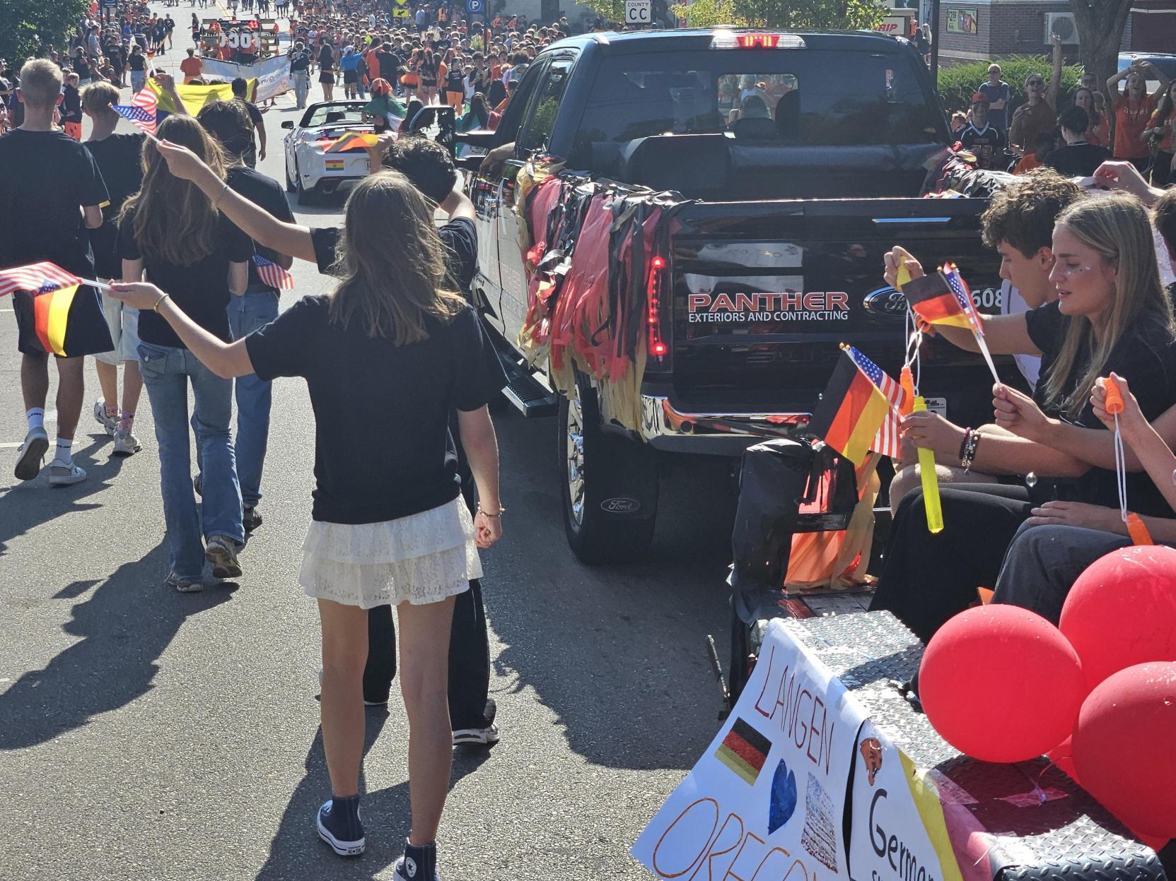 Direkt nach der Prep-Ralley begann auch schon die Parade. Wir Austauschschüler hatten unseren eigenen Wagen und konnten Gummibärchen an die Kinder verteilen. Die Stimmung während der Parade war unglaublich, da sich der ganze Ort auf den Straßen versammelte, um sich die Parade anzusehen.