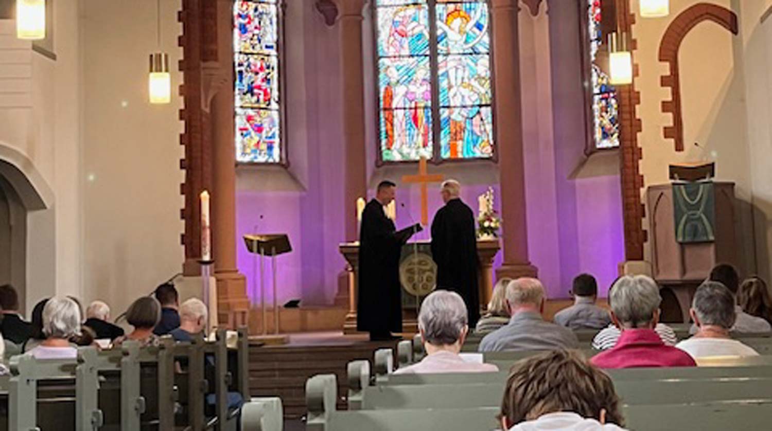 Am Sonntag, den 6. Juli 2025, wurde Dr. Johannes Dittmer, der zuletzt 13 Jahre als Schulpfarrer und -seelsorger an der Dreieichschule tätig war, im Rahmen eines Gottesdienstes durch Pfr. Jan Schäfer, Direktor des Kirchlichen Schulamts Offenbach, gemeinsam mit Anna Meschonat, Pfarrerin an der Martinskirche in Darmstadt, von seinem Dienstauftrag entpflichtet.