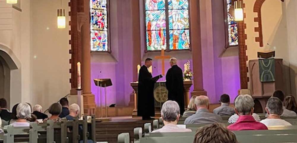 Am Sonntag, den 6. Juli 2025, wurde Dr. Johannes Dittmer, der zuletzt 13 Jahre als Schulpfarrer und -seelsorger an der Dreieichschule tätig war, im Rahmen eines Gottesdienstes durch Pfr. Jan Schäfer, Direktor des Kirchlichen Schulamts Offenbach, gemeinsam mit Anna Meschonat, Pfarrerin an der Martinskirche in Darmstadt, von seinem Dienstauftrag entpflichtet.