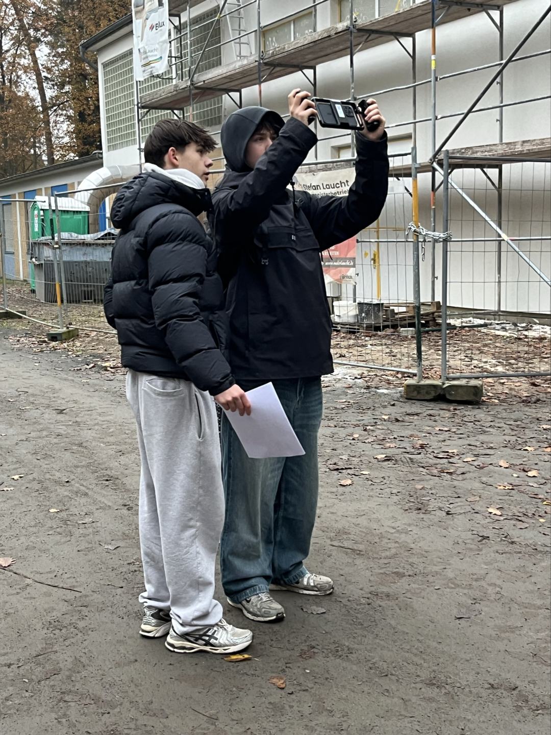 Daran arbeiteten wir über mehrere Monate in den Powi- und Deutschstunden. In dieser Zeit bekamen wir eine Einführung in die Technik, wie zum Beispiel die Kameraführung, den Ton und den Schnitt. Außerdem haben wir einen Drehplan sowie ein Drehbuch geschrieben und mögliche Interviewpartner herausgesucht und angefragt. Dabei hatten wir Hilfe von Coaches des Hessischen Rundfunks, die uns durch regelmäßige Besuche unterstützten und uns Vorschläge und Anleitungen gaben. Es gab verschiedene Drehorte, wie zum Beispiel den Bannwald, das Rathaus oder das Suchthilfezentrum „Wildhof“ in Offenbach.