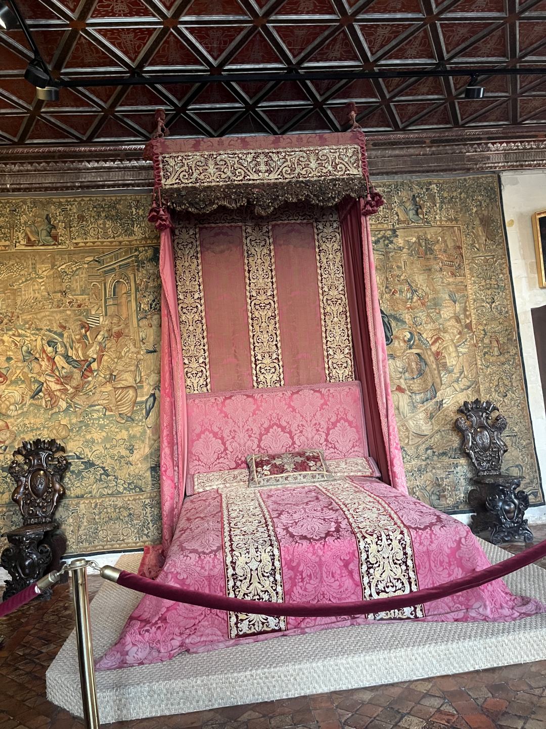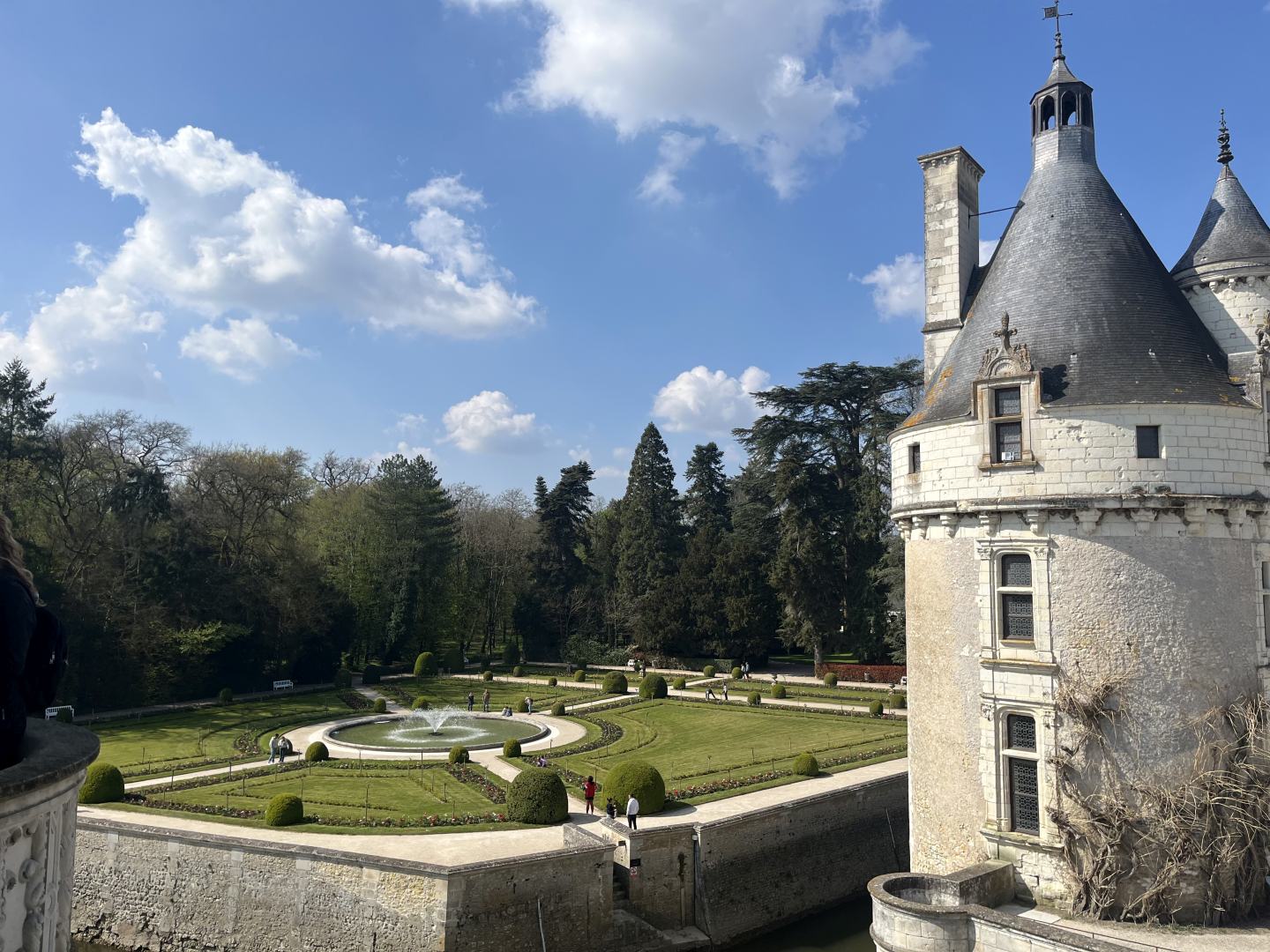 Wir sind am Samstag zum „Château de Chenonceau“ gefahren. Die Hinfahrt ging schnell vorbei. Das besondere an dem Schloss ist, das es wie ein Haus auf einer Brücke ist. Das Schloss steht über dem Fluss „Le Cher“.