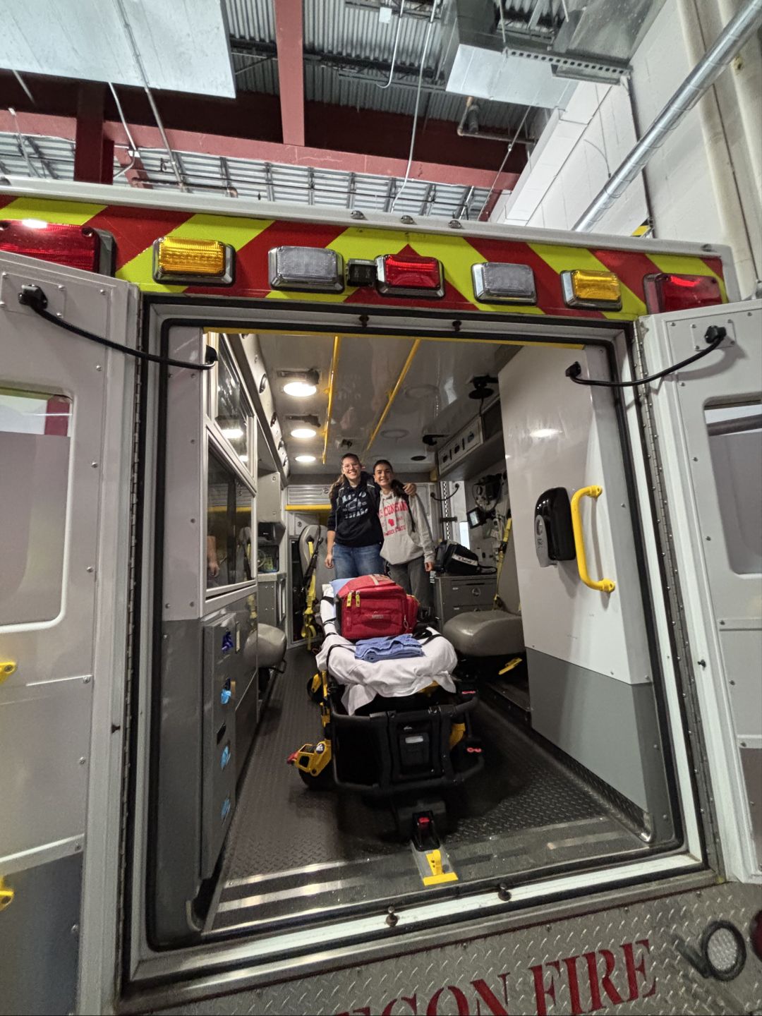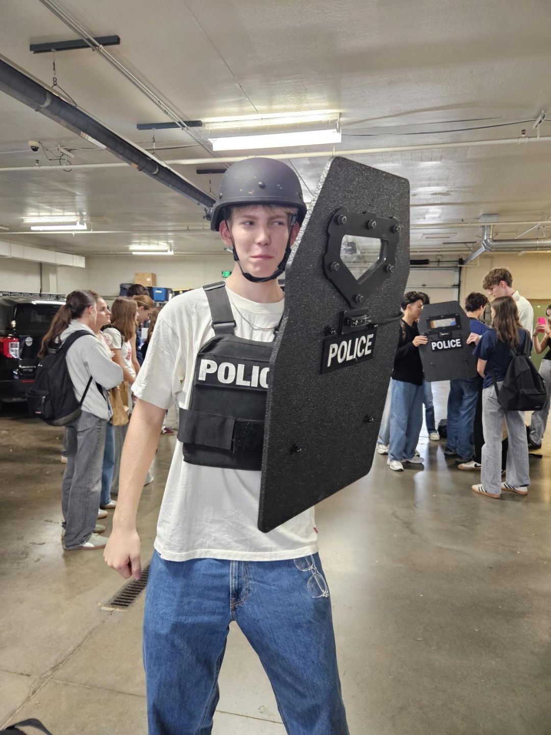 Es hat wirklich Spaß gemacht einen Einblick in die Arbeitswelt der Feuerwehrmänner& frauen und der Polizisten zu bekommen, wie beispielsweise als wir die Uniformen und das Equipment ausprobieren konnten.